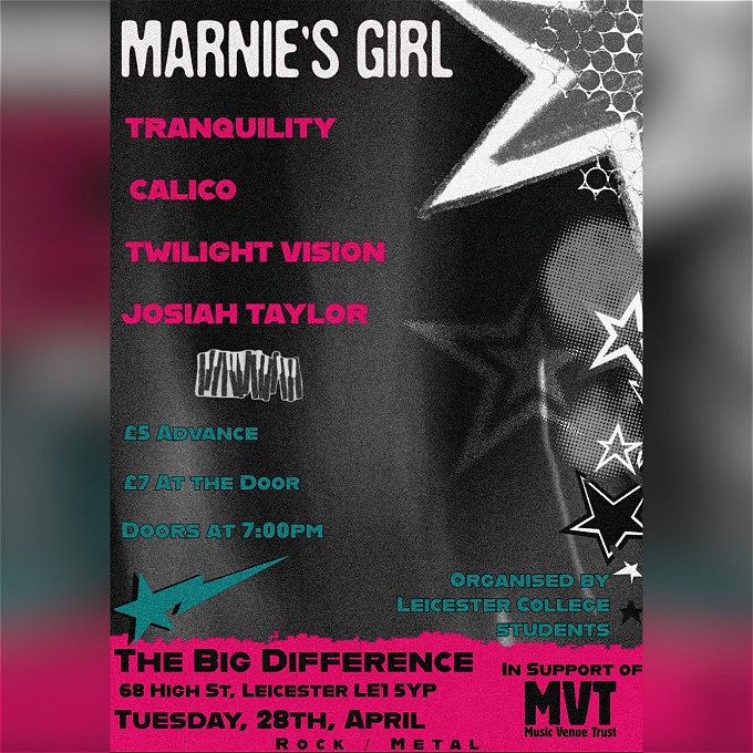 Supported by 4 small bands/Artists from Leicester College; Calico, Tranquility, Twilight Vision and Josiah Taylor.